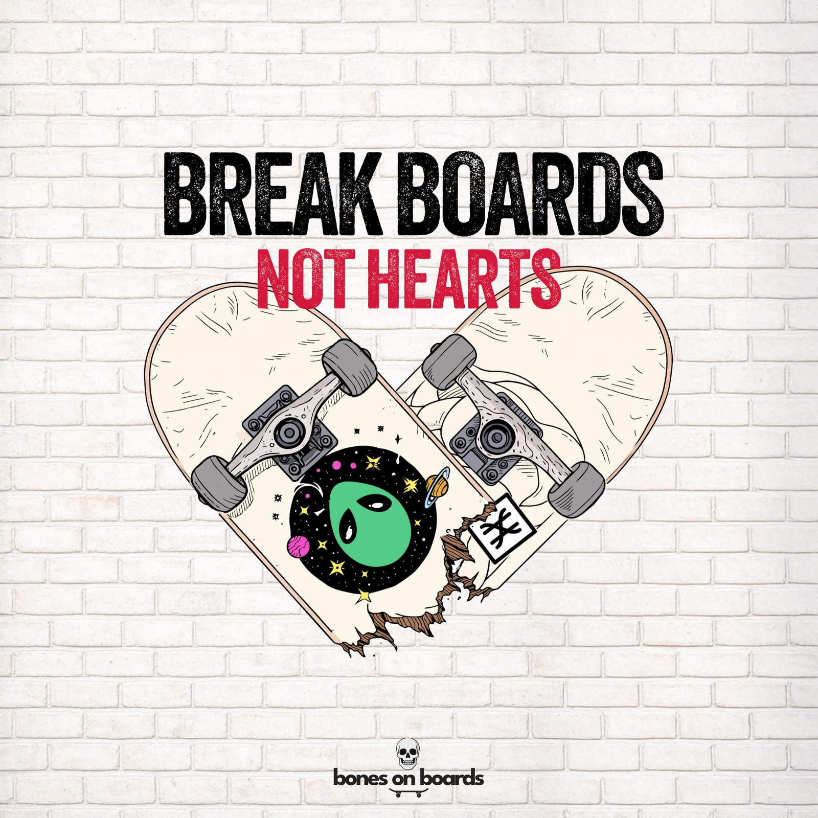 Break Boards, Not Hearts is a digital poster with a clear statement: don’t break hearts; break boards instead!